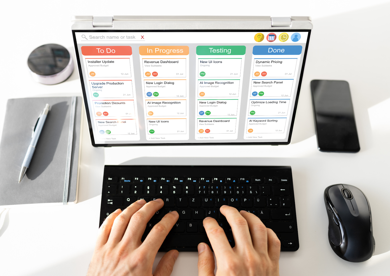 Agile teams rely on task management software that supports sprints, iterations, and velocity tracking. Project tasks are divided into time-boxed phases, with tools like Projectler supporting adaptable planning.